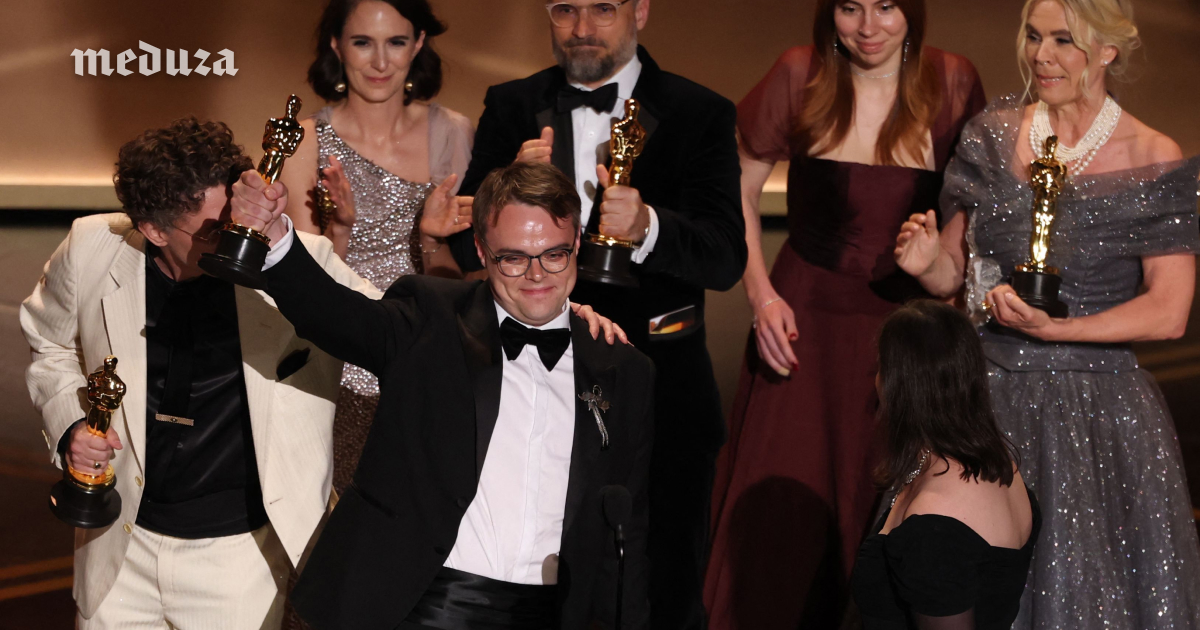 На церемонии вручения «Оскаров» в Лос-Анджелесе награду за «Лучший документальный фильм» получила картина «Господин Никто против Путина». Авторы фильма — видеограф из уральского города Карабаш Павел Таланкин (на фото второй слева в первом ряду) и американский режиссер Дэвид Боренштейн (первый слева).