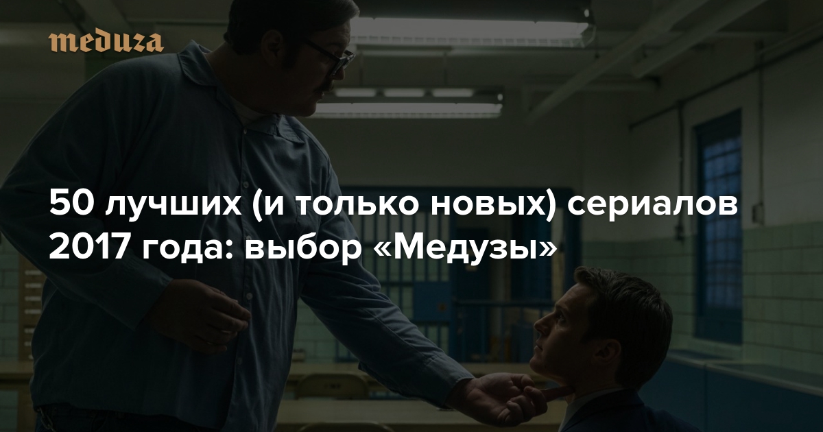 В 2017 году только в США вышло около 500 сериалов. Выбрать десятку лучших телешоу довольно сложно, поэтому в итоговом списке «Медузы» — целых 50 сериалов, как иностранных, так и российских. Все они перечислены в алфавитном порядке. В списке нет новых выпусков антологий и очередных сезонов старых сериалов (но есть одно исключение).