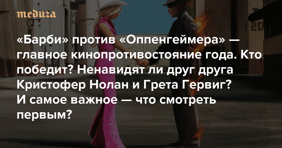 «Барби» против «Оппенгеймера» — главное кинопротивостояние года Кто победит? Ненавидят ли друг друга Кристофер Нолан и Грета Гервиг? И самое важное — что смотреть первым?
