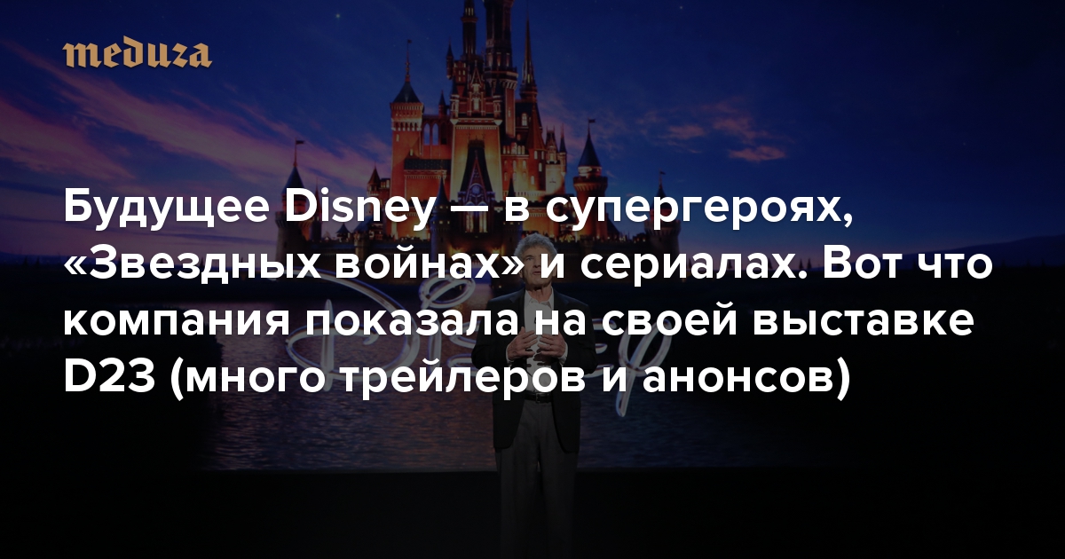 В Калифорнии прошла выставка D23 2019 — это фестиваль, куда студия Disney привозит режиссеров, актеров и сценаристов, участвующих в их фильмах и сериалах. В течение нескольких дней представители компании рассказывали о грядущих новинках. В этом году много внимания уделили стриминговому сервису Disney+ (его запустят уже в этом ноябре), «Звездным войнам» (в декабре выйдет заключительный эпизод саги о Скайуокерах) и, разумеется, будущему Marvel (нас ждет много супергеройских сериалов). «Медуза» рассказывает о главных анонсах.