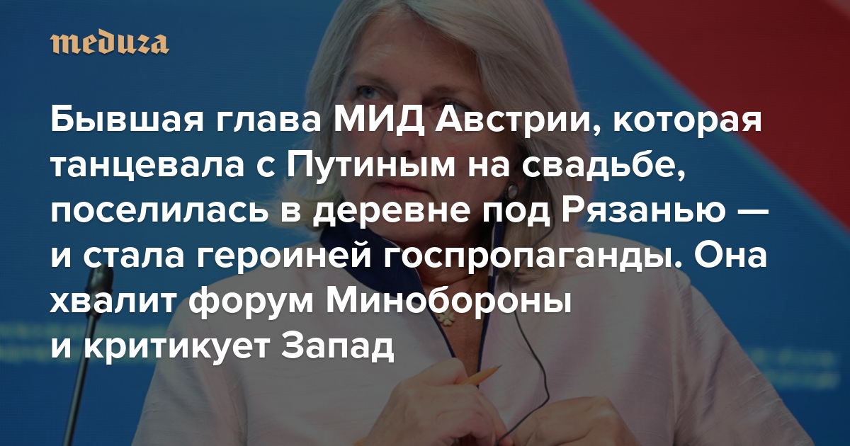 Бывшая глава МИД Австрии, которая танцевала с Путиным на свадьбе, поселилась в деревне под Рязанью — и стала героиней госпропаганды Она хвалит форум Минобороны, принимает казаков и критикует Украину и Запад