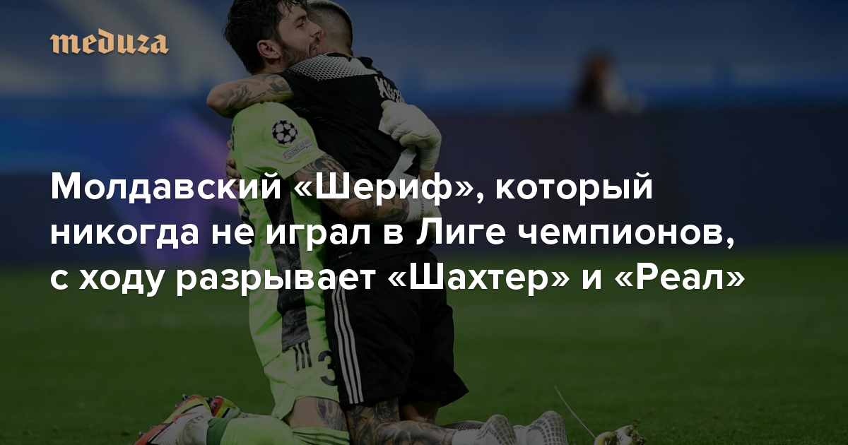 Чемпион Молдовы тираспольский «Шериф» сенсационно дебютировал в групповом этапе Лиги чемпионов. В первых двух турах были последовательно обыграны завсегдатай Лиги донецкий «Шахтер» и рекордсмен по числу побед в этом турнире — мадридский «Реал». В следующих двух турах «Шериф» сыграет с чемпионом Италии — «Интером». Хотя бы в одном нужно не проиграть. В этом случае «Шериф» имеет шансы стать первым за десятилетие футбольным «карликом» в плей-офф Лиги чемпионов. «Медуза» рассказывает главное о футбольном чуде.