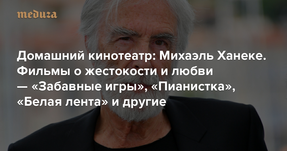 Каждые выходные в рубрике «Домашний кинотеатр» на «Медузе» выходят рекомендации для всех, кто хочет изучить историю кино. В этом выпуске кинокритик Антон Долин рассказывает об одном из самых знаменитых европейских режиссеров, обладателе «Оскара» и двух «Золотых пальмовых ветвей» — Михаэле Ханеке.
