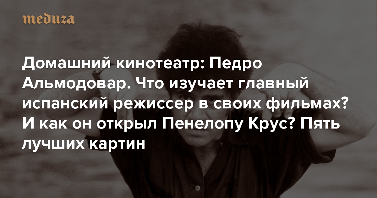 Каждые выходные в рубрике «Домашний кинотеатр» на «Медузе» выходят подборки рекомендаций для всех, кто хочет изучить историю кино. На этой неделе кинокритик Антон Долин выбрал пять фильмов Педро Альмодовара — самого известного современного испанского режиссера. Это картины о любви, травмах, страсти и табуированных темах: «Женщины на грани нервного срыва», «Свяжи меня!», «Все о моей матери», «Поговори с ней», «Возвращение».