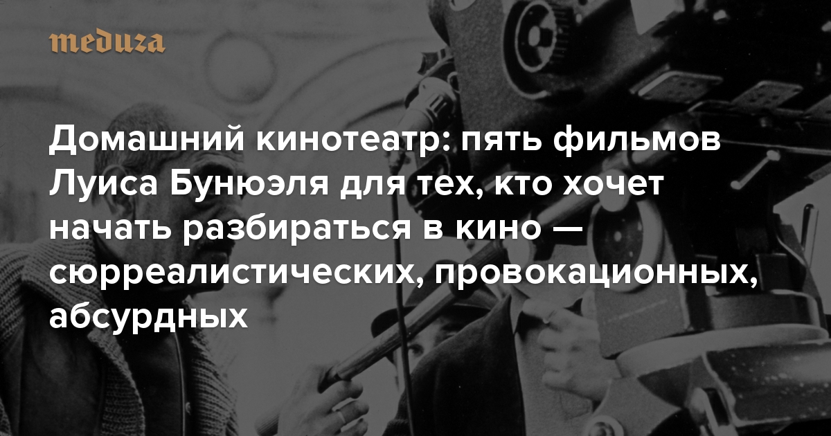 Каждые выходные в рубрике «Домашний кинотеатр» на «Медузе» выходят рекомендации для всех, кто хочет изучить историю кино во время самоизоляции. В первом выпуске автор рубрики, кинокритик «Медузы» Антон Долин рассказывал о пяти знаковых фильмах Ингмара Бергмана, во втором — о картинах Феллини. Третий выпуск «Домашнего кинотеатра» посвящен Луису Бунюэлю и его бунтарским фильмам.