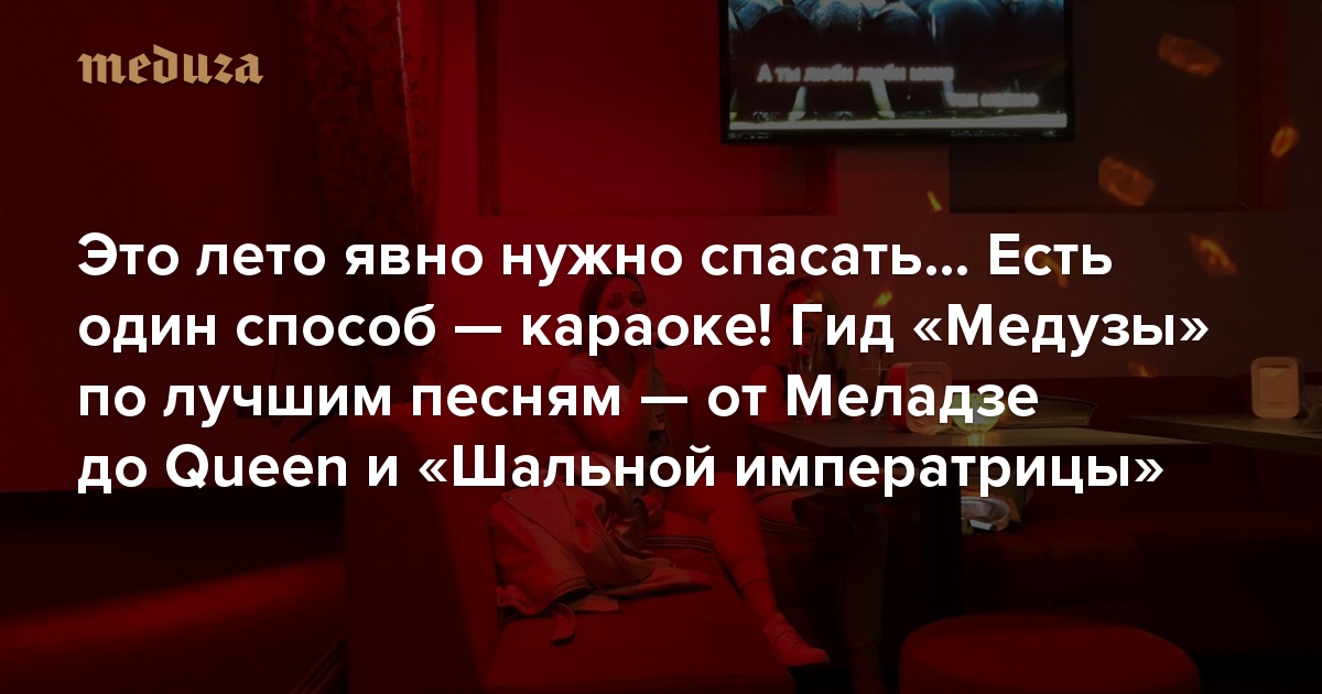 Это лето явно нужно спасать… Есть один способ — караоке! План такой: едем на природу, поем Меладзе, Queen и «Шальную императрицу». Гид «Медузы» по лучшим песням для караоке