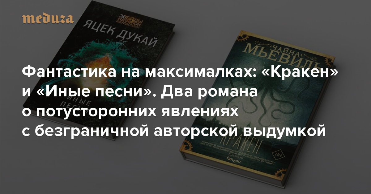 Литературный критик Галина Юзефович рассказывает о двух фантастических романах, отдельные небольшие эпизоды которых сами по себе могли бы стать сюжетами для книг. Роман британского писателя Чайны Мьевиля начинается с исчезновения огромного заспиртованного кракена из музея — но это лишь старт истории. Книга поляка Яцека Дукая «Иные песни» и вовсе предлагает читателю сложный многогранный мир, максимально непохожий на наш, реальный.