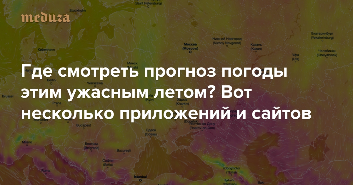 Давайте признаемся друг другу — это не лучшее лето в нашей жизни. Во всяком случае, в некоторых регионах. Если прогноз погоды не сулит ничего хорошего, то хочется, чтобы он был точным, удобным, красивым и честным («Завтра опять гребаный дождь!»). «Медуза» рассказывает о нескольких погодных сайтах и приложениях.