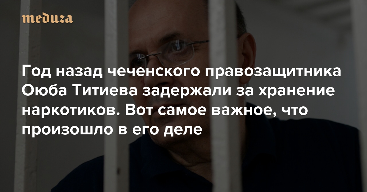 9 января 2018 года в Чечне задержали главу местного отделения «Мемориала» Оюба Титиева. Полиция заявила, что нашла в его автомобиле почти 200 граммов марихуаны. Титиева обвинили в хранении наркотиков — с учетом особо крупного размера правозащитнику угрожает до десяти лет тюрьмы. Сам правозащитник говорит, что наркотики ему подбросили после угроз со стороны чеченских властей. Весь прошедший год Титиев провел в СИЗО, сейчас суд над ним продолжается. «Медуза» рассказывает о самом важном, что произошло в этом деле за год.