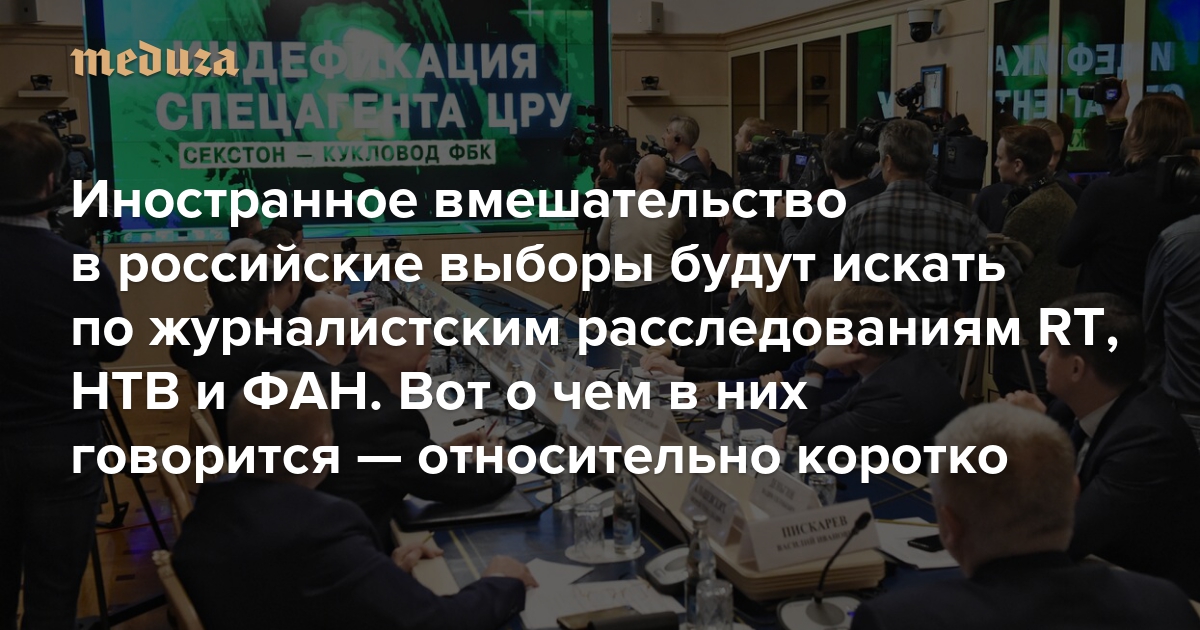 Иностранное вмешательство в российские выборы будут искать по журналистским расследованиям RT, НТВ и ФАН. Вот о чем в них говорится — относительно коротко