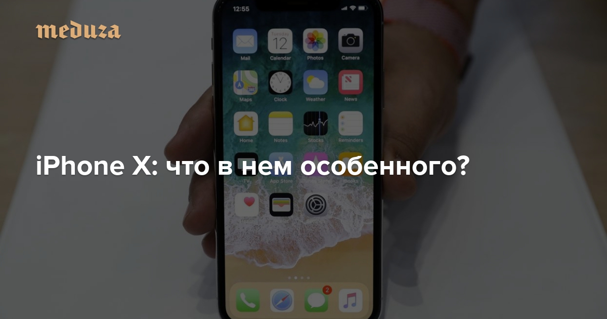 У iPhone X корпус из стекла (Apple обещает, что из очень прочного; корреспондент «Медузы» во время короткой демонстрации ронять его не рискнул), 5,8-дюймовый экран Super Retina с поддержкой HDR, защищенный от влаги и пыли корпус и двойная задняя камера. В отличие от iPhone 7 Plus (и нового iPhone 8 Plus), камеры в iPhone X расположены по вертикали.