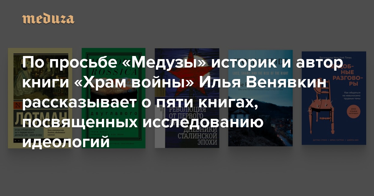 Как чужие идеи незаметно проникают в нашу жизнь По просьбе «Медузы» историк и автор книги «Храм войны» Илья Венявкин рассказывает о пяти книгах, посвященных исследованию идеологий