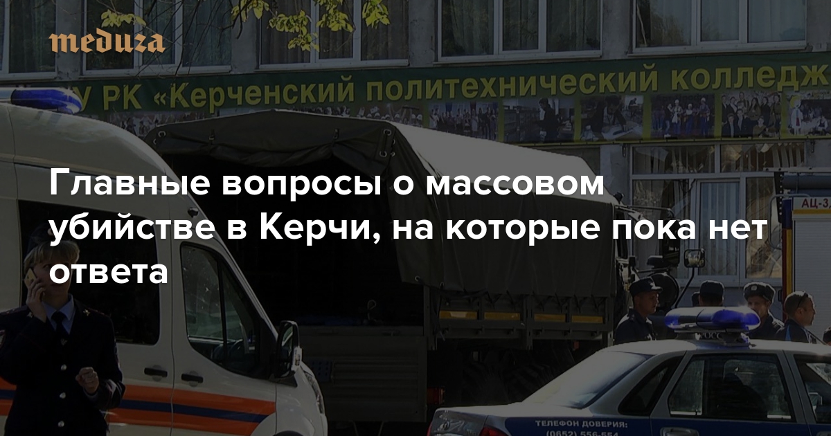 Около полудня 17 октября 18-летний Владислав Росляков открыл стрельбу в политехническом колледже в Керчи. Его жертвами стали 18 человек, сам он покончил с собой. Несмотря на то, что был создан оперативный штаб, а делом начали заниматься следователи из Москвы, в нем по-прежнему очень много непонятного. «Медуза» задает главные вопросы, на которые предстоит найти ответ в ближайшее время.