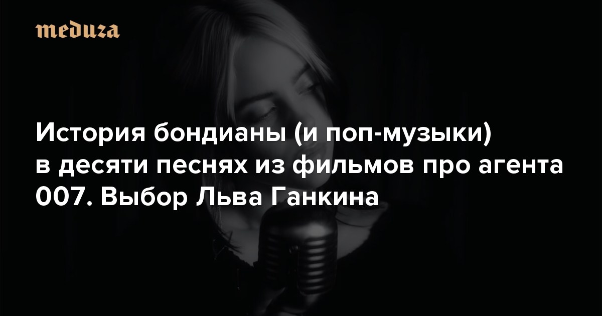 «Медуза» продолжает отмечать семилетие материалами об агенте 007 (как иронично…). В этот раз мы решили поговорить о песнях из бондианы — ведь в фильмах про Джеймса Бонда саундтрек всегда гораздо больше, чем просто саундтрек. По просьбе «Медузы», музыкальный критик Лев Ганкин выбрал десять композиций, по которым можно проследить за изменениями во франшизе — а также в самой поп-музыке. Увы, Тина Тернер и Radiohead в топ не попали. Тем он интереснее!