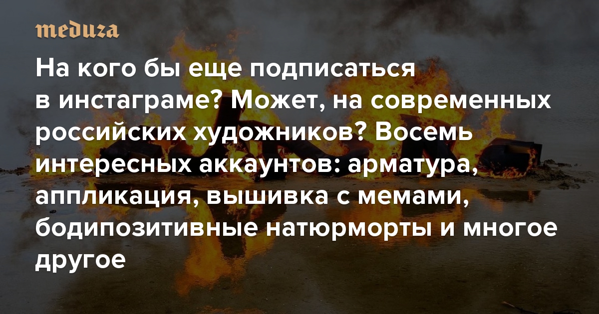 На кого бы еще подписаться в инстаграме? Может, на современных российских художников? Восемь интересных аккаунтов: арматура, аппликация, вышивка с мемами, бодипозитивные натюрморты и многое другое
