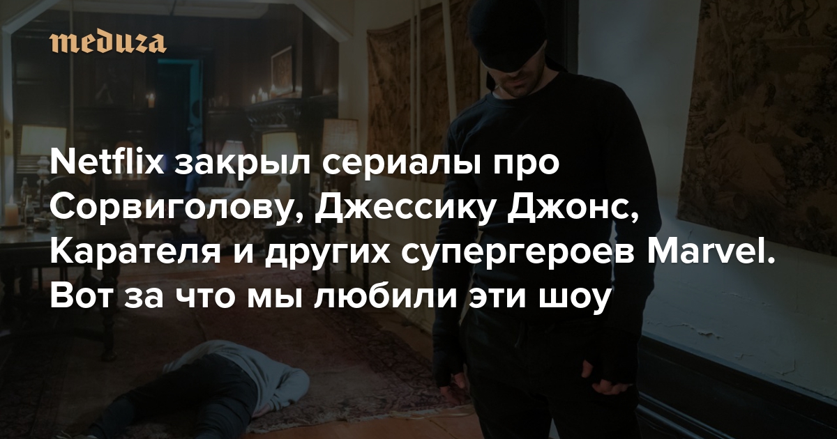 18 февраля Netflix объявил о закрытии двух оставшихся сериалов по мотивам комиксов Marvel — «Карателя» (он больше не выходит) и «Джессики Джонс» (третий сезон станет последним, когда он выйдет, пока неизвестно). Ранее сервис попрощался с другими супергеройскими шоу собственного производства: «Сорвиголовой», «Люком Кейджем» и «Железным кулаком». Это решение связывают со скорым запуском собственной стриминговой платформы компании Disney, которой принадлежит Marvel и права на их персонажей. Вместе с супергеройскими сериалами Netflix закончилась целая эпоха — по этому случаю «Медуза» вспоминает, почему зрители полюбили приключения Сорвиголовы, Джессики Джонс и других уличных мстителей.