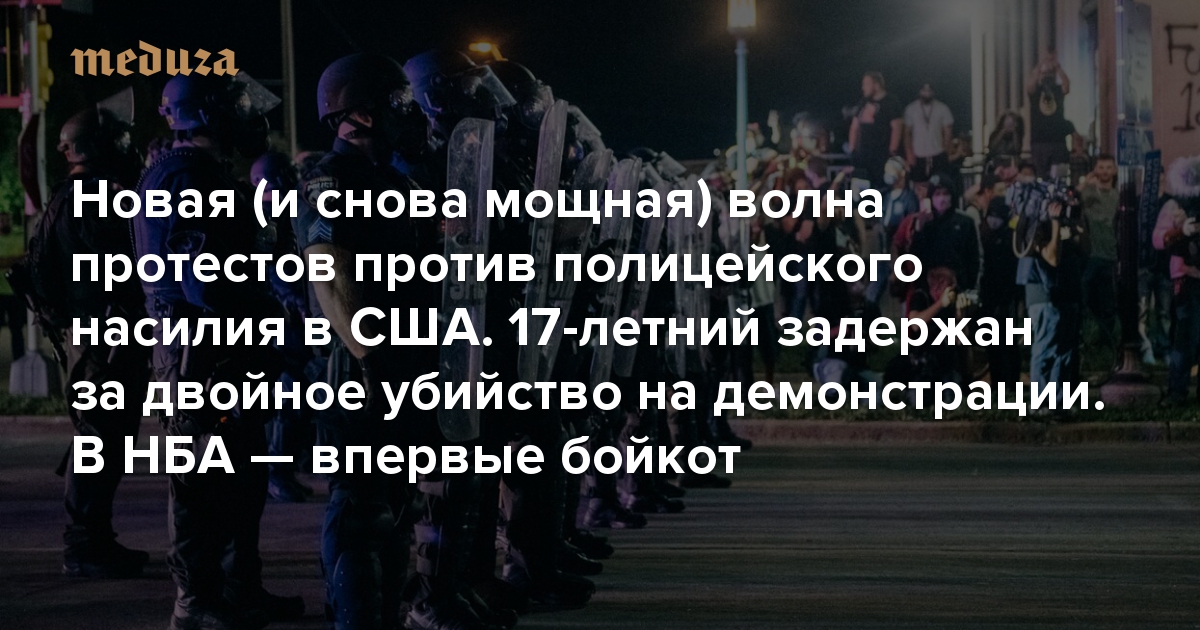 Новая (и снова мощная) волна протестов против полицейского насилия в США 17-летний задержан за двойное убийство на демонстрации. Команды НБА впервые бойкотируют матчи