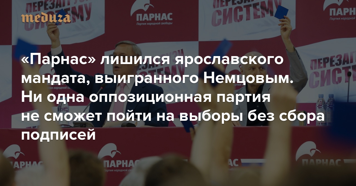 «Парнас» лишился ярославского мандата, выигранного Немцовым. Ни одна оппозиционная партия не сможет пойти на выборы без сбора подписей