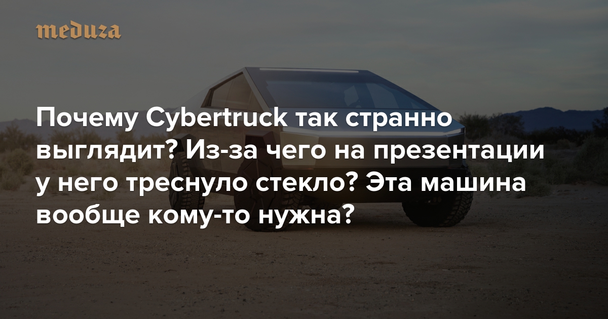 22 ноября глава Tesla Илон Маск показал новый футуристический пикап Cybertruck. Презентация получилось громкой, но, возможно, не в том смысле, в каком хотелось бы самому Маску. Мероприятие не обошлось без накладок, а критики и аналитики немедленно начали задавать вопросы, насколько успешным будет электромобиль с таким странным внешним видом. «Медуза» собрала впечатления и новые сведения о Cybertruck — а также вопросы, которые пока остались без ответа.