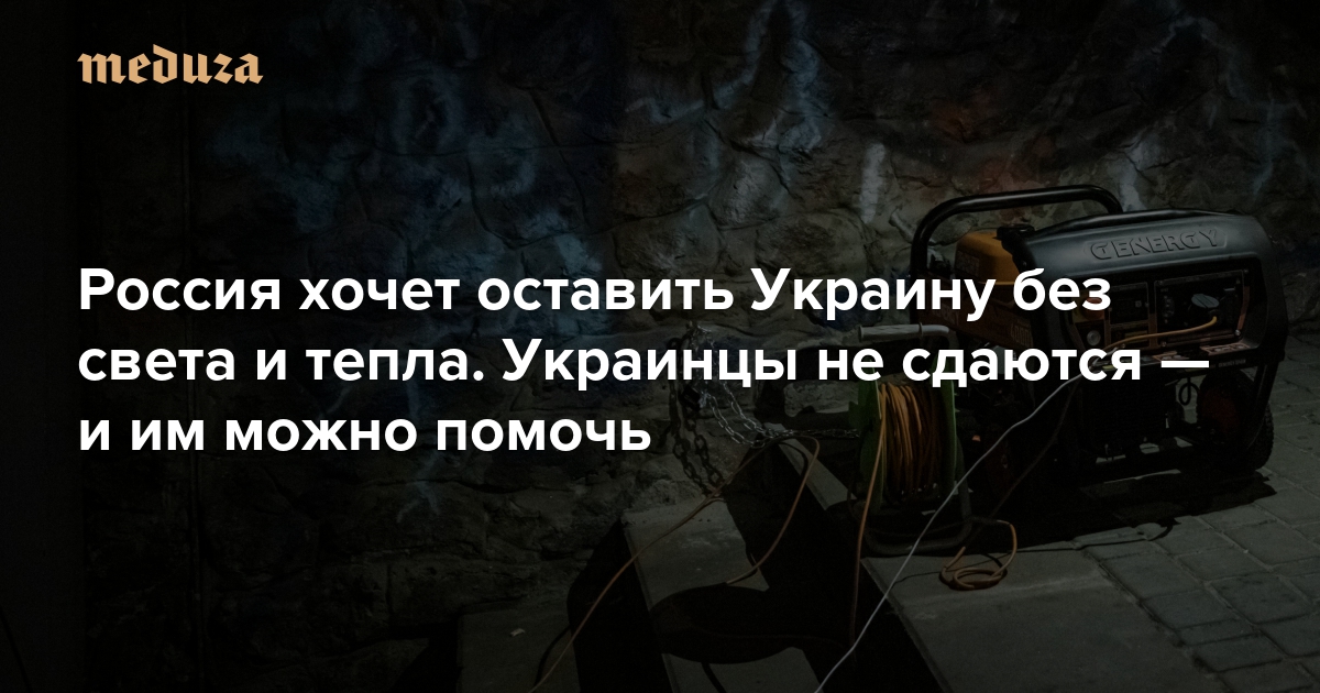 Россия хочет оставить Украину без света и тепла. Украинцы не сдаются — и им можно помочь Рассказываем, как отправить в страну генераторы, теплые вещи — или деньги на их покупку