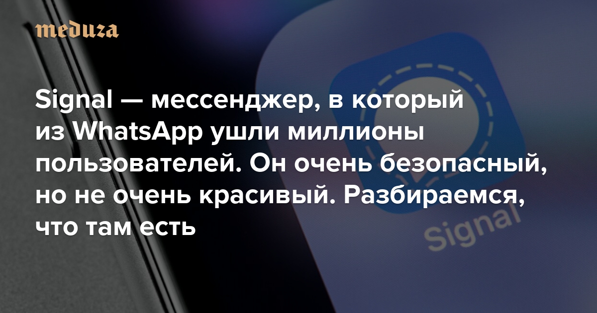 Из-за обновления политики конфиденциальности многие пользователи WhatsApp стали переходить в другие, более приватные мессенджеры. От этого особенно выиграл Signal, популярный среди журналистов, правозащитников и политических активистов, но не среди обычных людей. Еще год назад этим мессенджером пользовалось около полутора десятков миллионов человек, а после истории с WhatsApp, по некоторым оценкам, каждый день добавляется примерно по миллиону новых пользователей. Этот мессенджер стремится обеспечить максимальную приватность собеседников и при этом остается бесплатным. «Медуза» рассказывает, какие у Signal есть достоинства и недостатки.