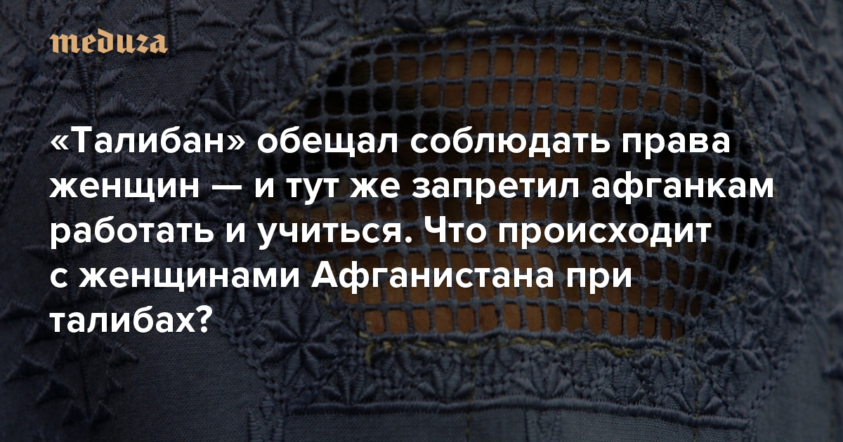 «Талибан» обещал соблюдать права женщин — и тут же запретил афганкам работать и учиться. Что происходит с женщинами Афганистана при талибах?
