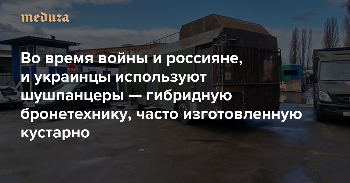 Полномасштабное вторжение России в Украину продолжается уже более года. За это время обе воюющие армии начали испытывать дефицит не только боеприпасов, но и техники. А оставшиеся у сторон боевые машины нередко не устраивают военных по уровню защищенности, мобильности и огневой мощи — особенно остро проблема стоит в тех частях Вооруженных сил РФ и Вооруженных сил Украины, что были оперативно созданы в рамках мобилизации. Один из способов ее преодоления — производство «шушпанцеров». Так называют боевые машины — гибриды кустарного производства, которые собирают из имеющихся (иногда устаревших на десятилетия) орудий и машин. На шушпанцеры навешивают дополнительную броню (или активную защиту от танков) и устанавливают мобильные орудия. «Медуза» изучила самые распространенные и оригинальные модели боевых гибридов, замеченные в Украине.
