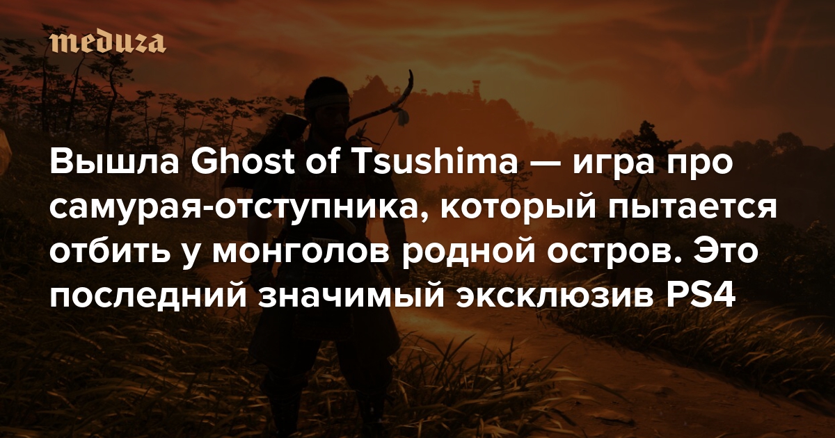 Американская студия Sucker Punch выпустила на PS4 самурайский боевик Ghost of Tsushima, он же «Призрак Цусимы» в русском переводе. Это последний значимый эксклюзив для консоли Sony — в дальнейшем компания сосредоточит усилия на играх для PS5, которая должна поступить в продажу до конца 2020 года. Журналист «Медузы» Максим Иванов рассказывает, чем хороша Ghost of Tsushima и кого она может разочаровать.