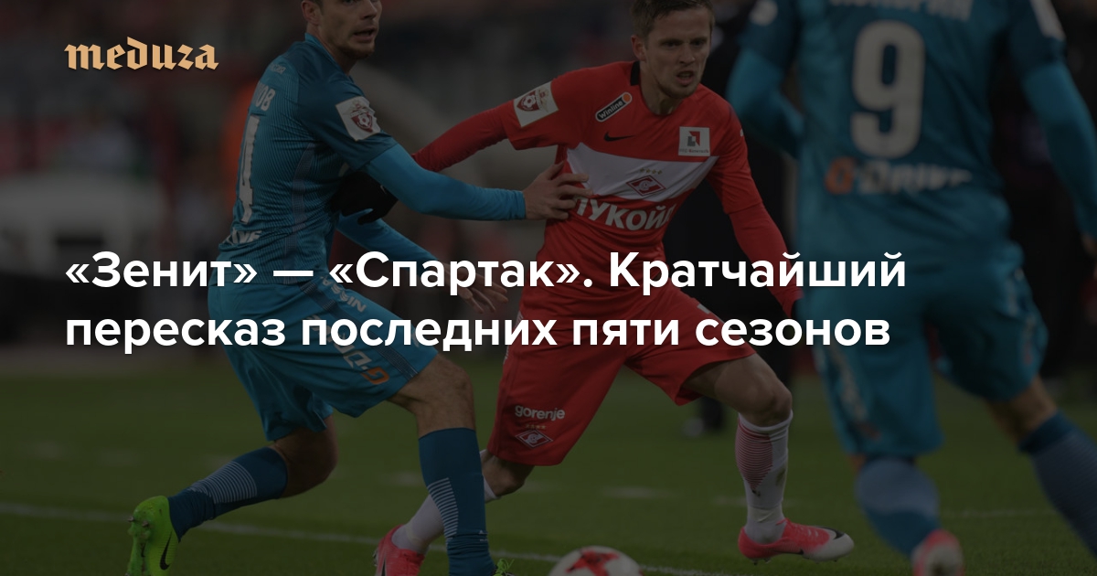 Если представить, что российский футбол — это длинный (и популярный!) сериал, то серия от 6 августа будет одной из центральных в нынешнем сезоне: играют чемпион России «Спартак» и обозленный чередой неудач прошлого сезона «Зенит». «Медуза» кратко пересказывает последние пять сезонов этого противостояния.