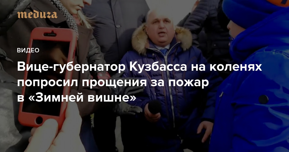 Вице-губернатор Кузбасса на коленях попросил прощения за пожар в «Зимней вишне»