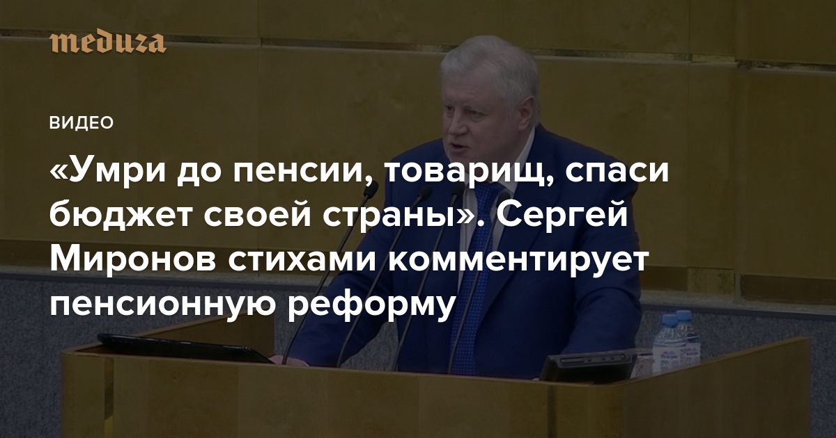«Умри до пенсии, товарищ, спаси бюджет своей страны». Сергей Миронов стихами комментирует пенсионную реформу