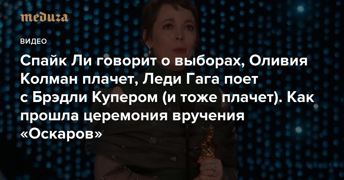 Спайк Ли говорит о выборах, Оливия Колман плачет, Леди Гага поет с Брэдли Купером (и тоже плачет). Как прошла церемония вручения «Оскаров»