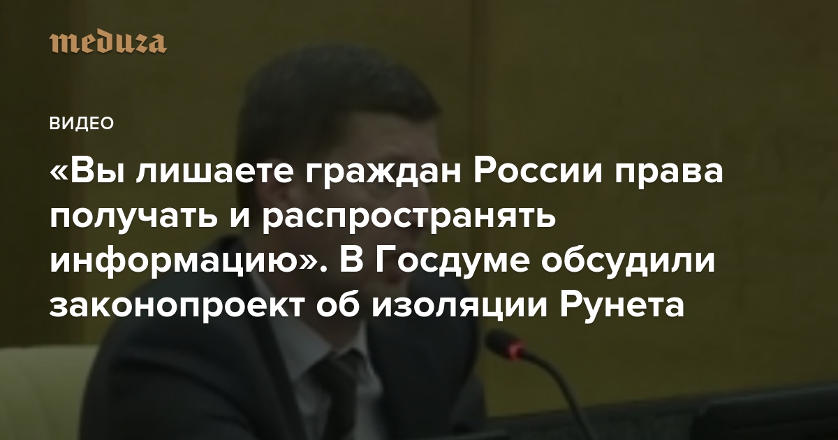 «Вы лишаете граждан России права получать и распространять информацию» В Госдуме обсудили (и приняли во втором чтении) законопроект об изоляции Рунета