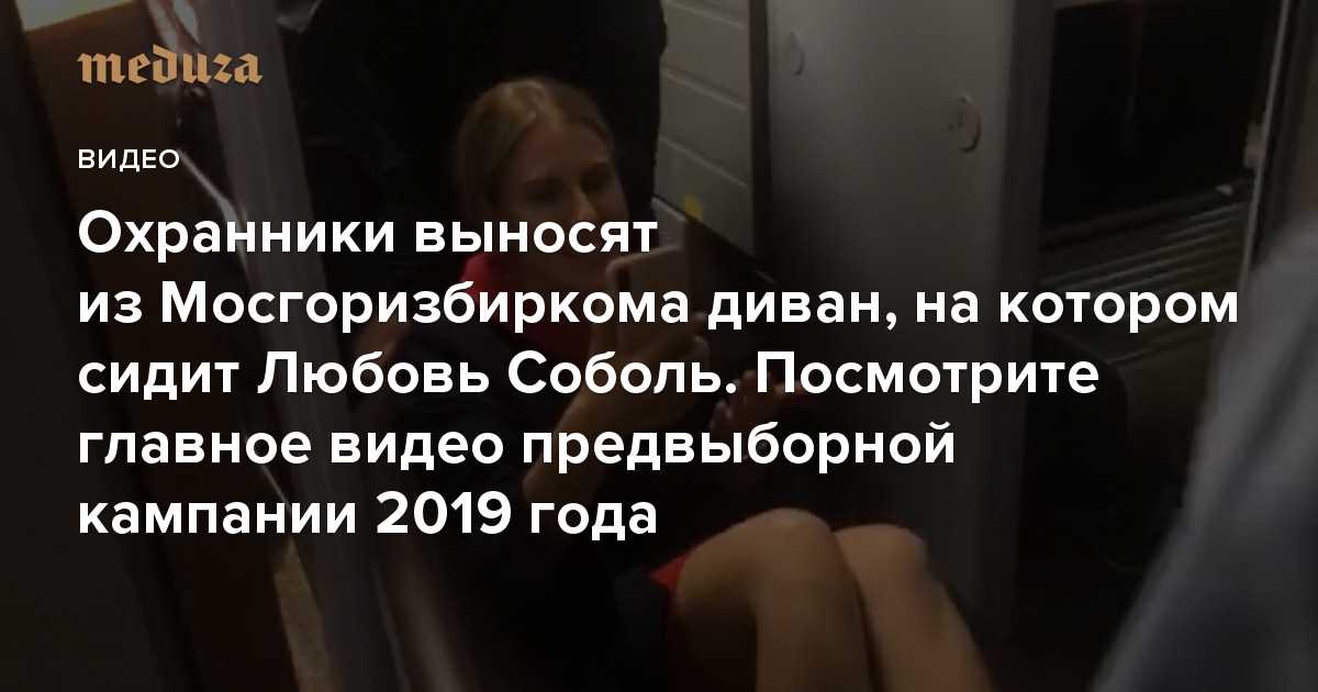 Охранники выносят из Мосгоризбиркома диван, на котором сидит Любовь Соболь. Посмотрите главное видео предвыборной кампании 2019 года