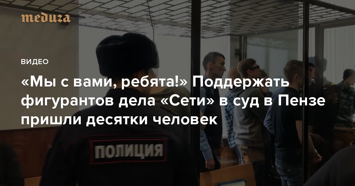 В Пензе 10 февраля суд вынес приговор семерым фигурантам дела «Сети», обвиняемым в организации террористического сообщества. Им назначено наказание от шести до 18 лет лишения свободы. Поддержать обвиняемых в суд пришли десятки человек. Они скандировали: «Ребята, мы с вами!» и «Свободу политзаключенным!». Защита намерена обжаловать приговор. Репортаж из суда читайте на «Медузе».