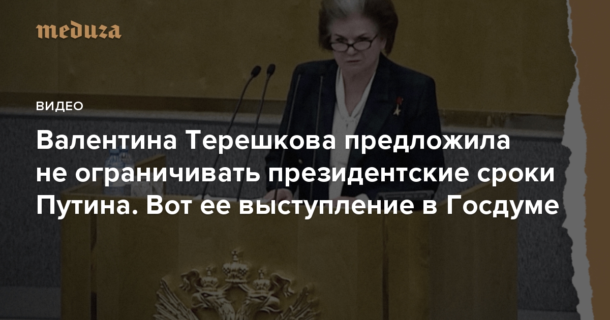 Валентина Терешкова предложила не ограничивать президентские сроки Путина. Вот ее выступление в Госдуме