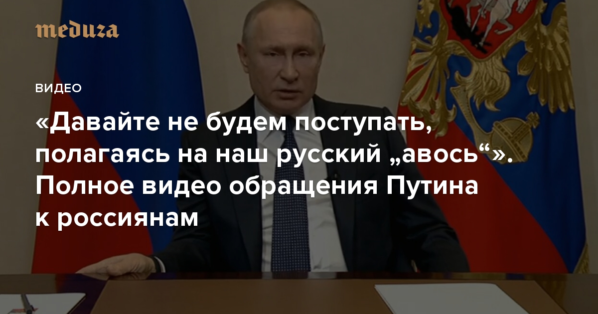 «Давайте не будем поступать, полагаясь на наш русский „авось“». Полное видео обращения Путина к россиянам
