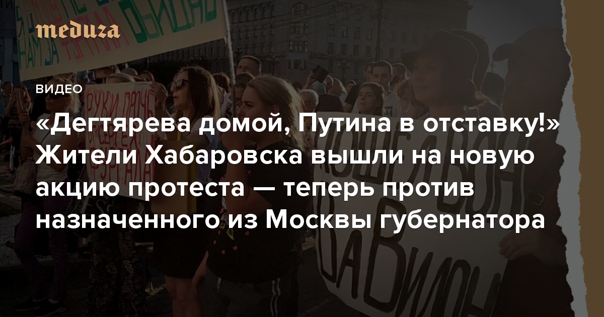 Жители Хабаровска вышли на акцию протеста против нового главы Хабаровского края Михаила Дегтярева — депутата Госдумы от ЛДПР, которого президент РФ Владимир Путин 20 июля назначил врио губернатора края. Участники акции скандировали «Дегтярева — домой!» и требовали вернуть на пост главы региона Сергея Фургала. Фургал — также член ЛДПР — был арестован по подозрению в организации убийств и покушений на бизнесменов в 2004-2005 годах. Свою вину бывший губернатор не признает. Акции в поддержку Фургала идут в Хабаровске уже 11 дней. На акции 21 июля, отмечает корреспондент «Медузы», впервые прозвучали лозунги с требованием отставки президента РФ.