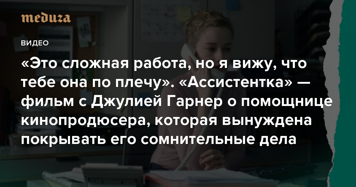 «Это сложная работа, но я вижу, что тебе она по плечу» «Ассистентка» — фильм с Джулией Гарнер о помощнице кинопродюсера, которая вынуждена покрывать его сомнительные дела