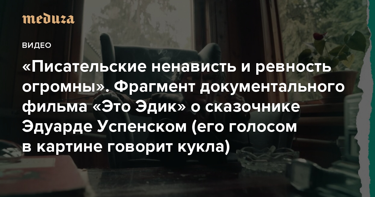 25 ноября на сервисе Premier выходит документальный фильм журналиста Романа Супера и режиссера Ивана Проскурякова «Это Эдик», посвященный жизни детского писателя Эдуарда Успенского. Картину можно будет посмотреть бесплатно. В фильме приняли участие родственники и знакомые писателя; сам Успенский, который умер в августе 2018 года, показан в виде куклы (идея Ивана Проскурякова, самого персонажа создал Игорь Хилов). «Медуза» публикует фрагмент фильма, в котором друзья Успенского журналист Лев Гущин, актер и режиссер Александр Левенбук и финский писатель Ханну Мякеля рассказывают о взаимоотношениях советских детских писателей.