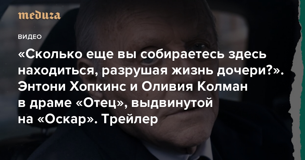 «Сколько еще вы собираетесь здесь находиться, разрушая жизнь дочери?» Энтони Хопкинс и Оливия Колман в драме «Отец», выдвинутой на «Оскар». Трейлер