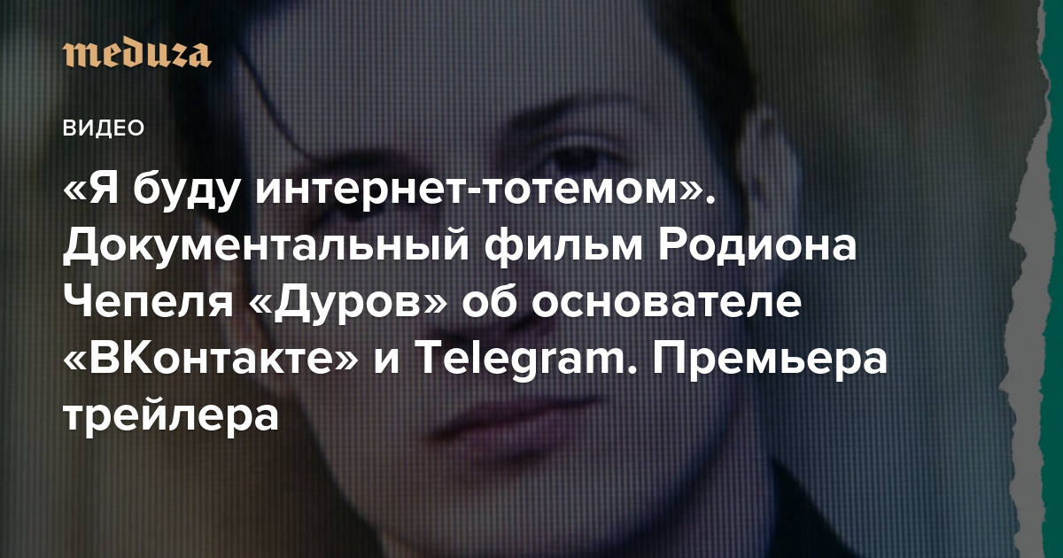 «Я буду интернет-тотемом» Документальный фильм Родиона Чепеля «Дуров» об основателе «ВКонтакте» и Telegram. Премьера трейлера