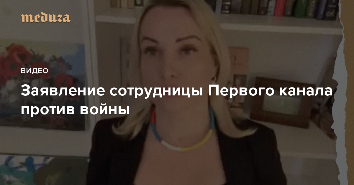 Вечером 14 марта сотрудница Первого канала Марина Овсянникова прервала эфир программы «Время», появившись в кадре с плакатом «Остановите войну. Не верьте пропаганде. Здесь вам врут». Перед этим она записала видеообращение против «братоубийственной войны».