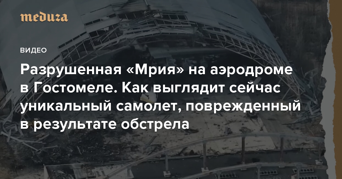 Аэродром в Гостомеле, Киевская область, подвергся массированному обстрелу в начале вторжения России в Украину. В результате обстрела был уничтожен стоящий на аэродроме самый большой в мире самолет — «Мрия», существовавший в единственном экземпляре. Посмотрите, как сейчас выглядят аэродром и разрушенный уникальный самолет. Уничтоженная «Мрия» («Мечта» в переводе с украинского) стала одним из символов войны в Украине. Власти Украины заявляют, что будут восстанавливать самолет и говорят, что можно уничтожить «Мрию», но не уничтожить мечту.