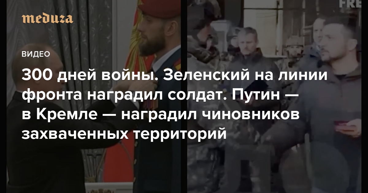 300 дней войны. Зеленский на линии фронта наградил солдат. Путин — в Кремле — наградил чиновников захваченных территорий Посмотрите, в чем разница