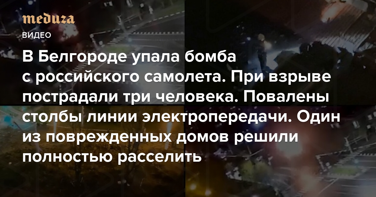 В Белгороде упала бомба с российского самолета. Кадры с места взрыва Пострадали три человека. Повалены столбы линии электропередачи. Один из поврежденных домов решили полностью расселить