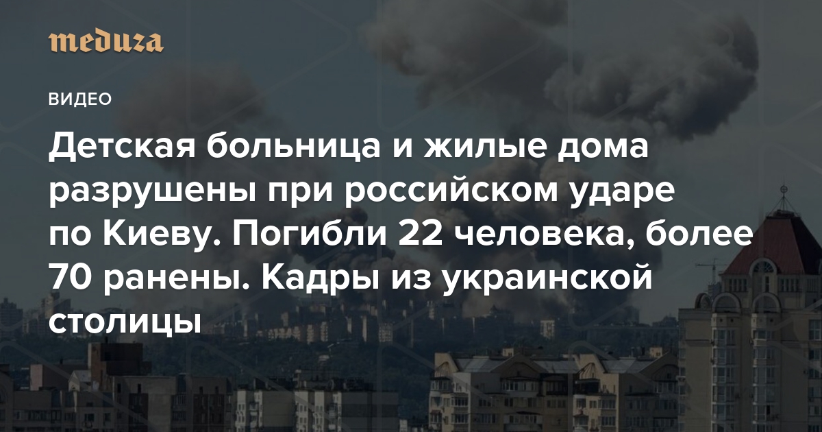 Детская больница и жилые дома разрушены при российском ударе по Киеву. Погибли 22 человека, более 70 ранены Кадры из украинской столицы