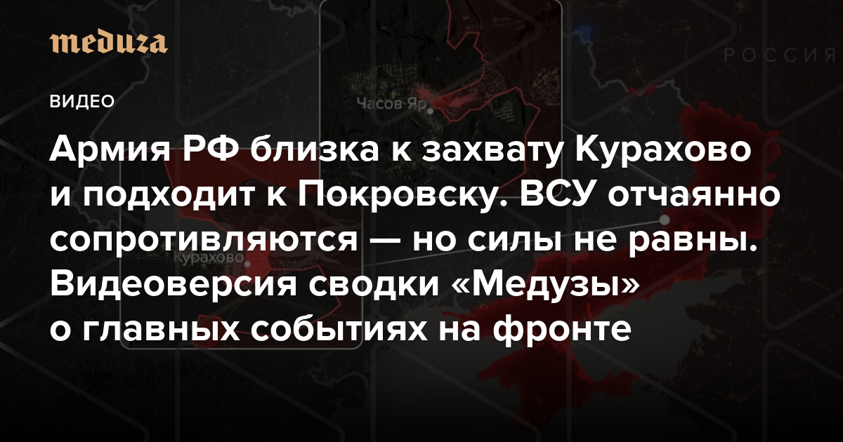Армия РФ близка к захвату Курахово и подходит к Покровску. ВСУ отчаянно сопротивляются — но силы не равны Видеоверсия сводки «Медузы» о главных событиях на фронте
