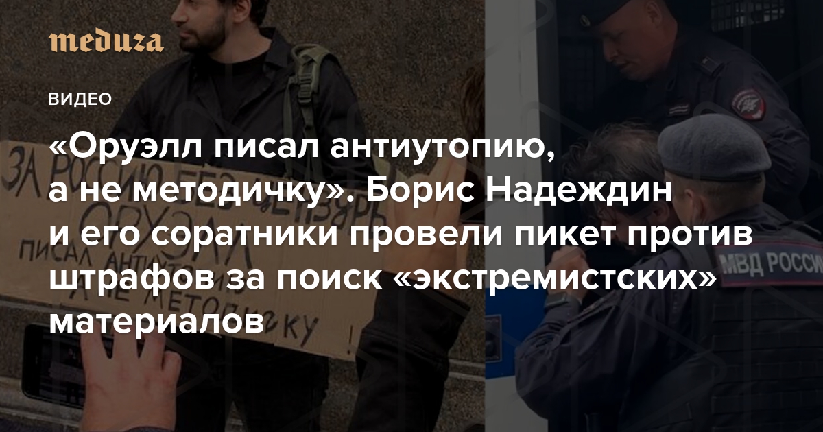 «Оруэлл писал антиутопию, а не методичку» Борис Надеждин и его соратники провели пикет у Госдумы против штрафов за поиск «экстремистских» материалов