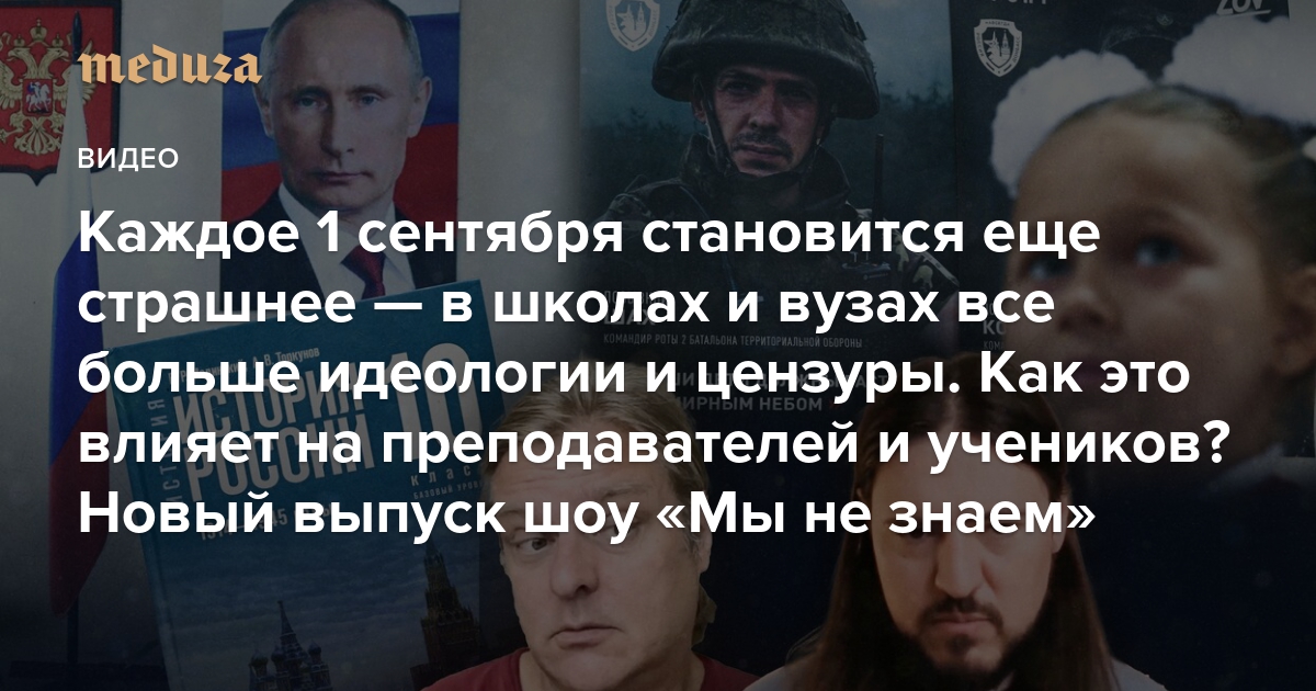 Каждое 1 сентября становится еще страшнее — в школах и вузах все больше ограничений, идеологии и цензуры. Как это влияет на преподавателей и учеников? И куда теперь поступать? Новый выпуск шоу «Мы не знаем»